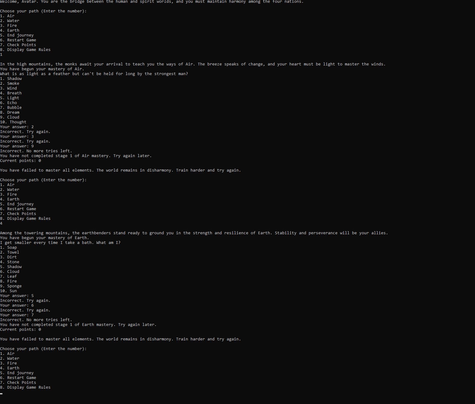 - Puzzle game with elemental forces (Air, Water, Fire, Earth)